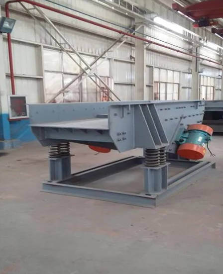 تستخدم المعدات محركين اهتزازيين بنفس المواصفات كمصادر إثارة مزدوجة. يؤدي الدوران عالي السرعة للكتل اللامركزية في كلا طرفي المحركات إلى توليد قوة إثارة مستمرة، مما يوفر طاقة اهتزاز مستقرة للمعدات. يهتز حوض التغذية في حركة خطية ترددية في اتجاه مائل لإكمال عملية نقل المواد. عندما يكون مكون التسارع لاهتزاز الحوض أكبر من مكون تسارع الجاذبية في الاتجاه العمودي على الحوض، يتم إلقاء المادة الموجودة في الحوض إلى الأعلى، وتقفز إلى الأمام على طول مسار مكافئ. مع كل دورة اهتزاز للحوض، يتم إلقاء المادة إلى الأمام مرة واحدة. من خلال حركة القفز المستمرة المتزامنة مع تردد اهتزاز الحوض، يتم تحقيق التغذية المنتظمة والمستمرة للمواد.